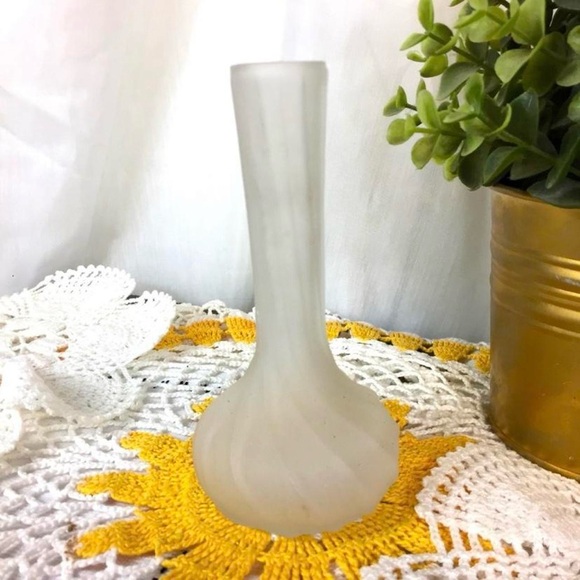 Vintage Mini Swirled Frosted Glass Bud Vase Small Decor Swirl Design Textured