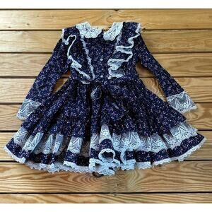 Vintage Mini World Inc Girl’s Blue Floral Lace Trim Dress Size 4