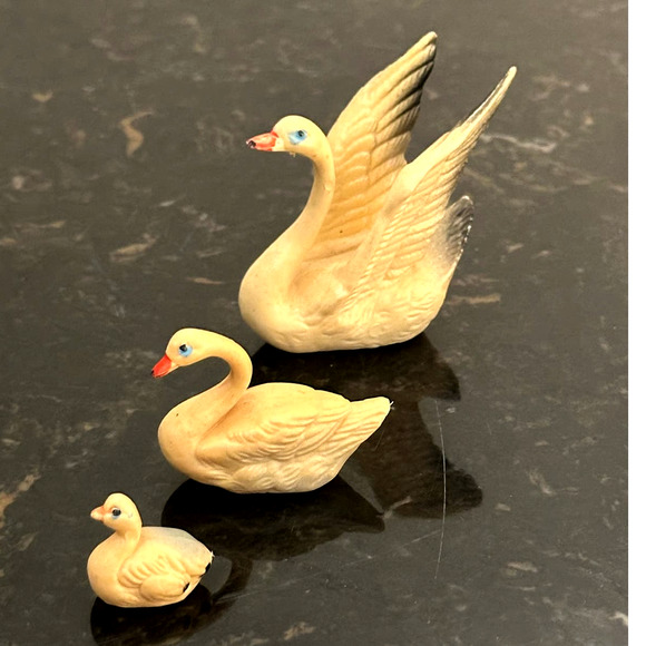 Vintage Miniature Celluloid Family of 3 Swans Set-Rare!