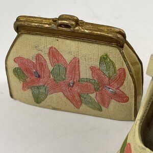 Vintage Miniature Ceramic 3” Shoe And Purse High Heels Floral Lot Of 2