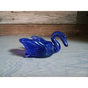 Vintage Miniature Cobalt Blue Swan Open Salt Cellar Dish