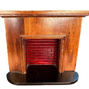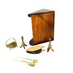 Vintage Miniature Corner Wooden Fireplace Dollhouse Metal Andirons Wood Bellow
