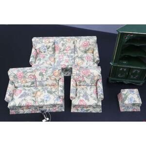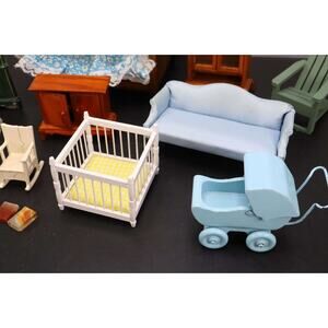 Vintage Mixed Lot Miniature Dollhouse Furniture Poster Bed Bike Buggies Birdbath Books Etc.