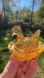 Vintage Miniature Honey Amber Glass Hen on Nest Salt Cellar Degenhart USA