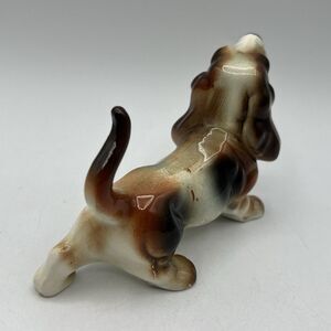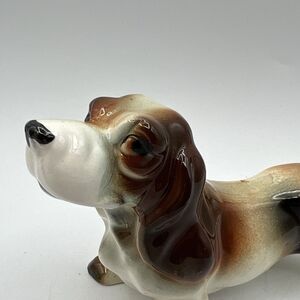 Vintage Miniature Porcelain Basset Hound Dog Figurine 5.5" Brown White