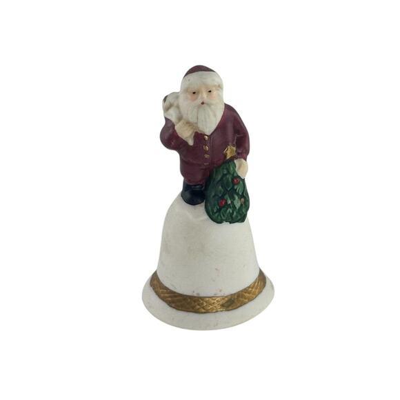 Vintage Miniature Porcelain Santa Bell By Russ Berrie Christmas Decor