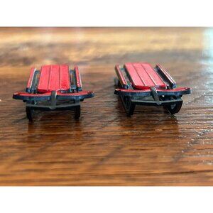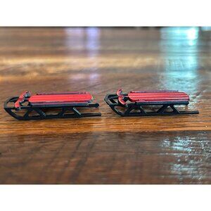 Vintage Miniature Red & Black Sled Pair For Christmas Village Or Diorama