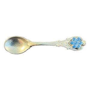 Vintage Miniature Spoon Brooch Silver Tone Metal Blue Rhinestone Crystal Pin