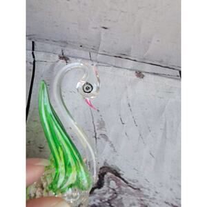 Vintage Miniature Spun Glass/Blown Glass Swan 2.5 Inch Tall Clear/Green