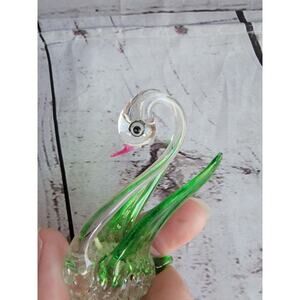 Vintage Miniature Spun Glass/Blown Glass Swan 2.5 Inch Tall Clear/Green in good condition NO chips or cracks