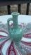 Darling little vintage vase in a pale blue green. On one side of the vase is the remains of a floral decal which can be with kept or scrubbed off. Perfect for a small bouquet from the garden or a single stem.
