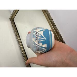 Vintage Miniature Vase Mesa Verde hand made native american indian blue bowl Navajo pottery