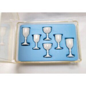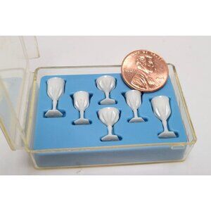 Vintage Miniature White Goblet Set In Display Case Dollhouse Drinkware Accessory