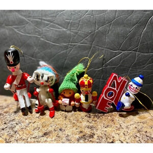 Vintage Miniature Wooden Christmas Ornaments 5 Pieces Lot