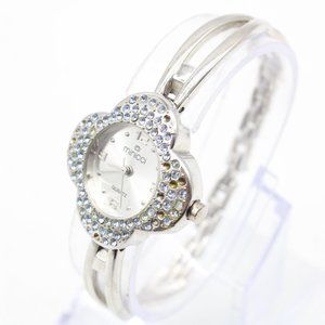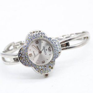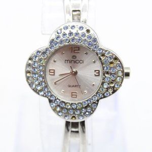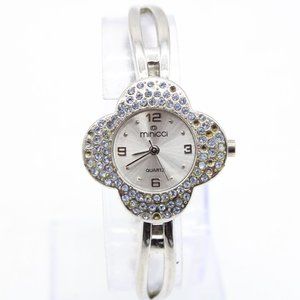 Vintage Minicci Watch Womens Silver Tone Steel Classic Floral Rhinestones Dial