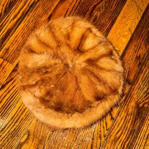 Here is a vintage 1950s/60s mink beret adorned with a bow. It’s in great condition! I just never wore it. Circumference is approximately 21”