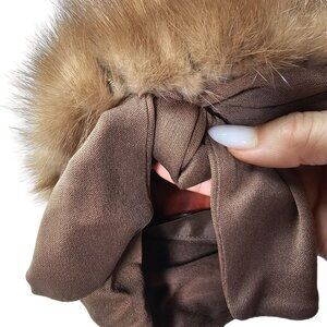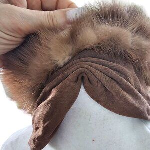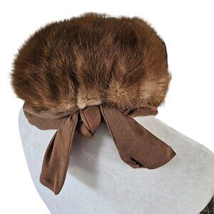 Vintage Mink Brown Pill box Fur Beret Hat with Bow O/S