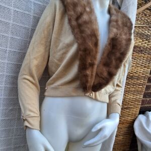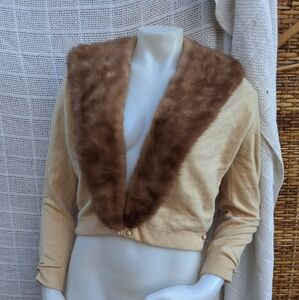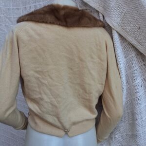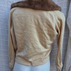 Sweater is notched with buttons on good vintage condition which means no holes,but this has had a previous life. Light stain..not visible but noticed in photo on bottom No fabric tag but I believe