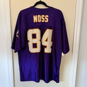 Step back in time with this vintage Minnesota Vikings Randy Moss NFL football jersey. Perfect for sports fans and collectors, this size large jersey offers a classic look and feel, celebrating a legendary player.