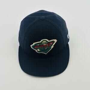 The Vintage Minnesota Wild Hat Cap is a stylish and officially licensed accessory for fans of the NHL team. Made of black wool by New Era, this fitted cap in size 7 1/2 is perfect for any hockey enthusiast looking to show their support. The unisex adult design makes it suitable for both men and women, and the classic black color adds a touch of nostalgia to any fan's collection. Made in the USA, this cap is a must-have for fans of the Minnesota Wild and hockey in general.