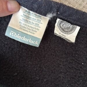 Amazing Minnesota Wild fleece blanket alert! The colors are so cool on both sides and it’s the perfect small size to wear at a game or put in your house. By Beiderlack with NHL tag.