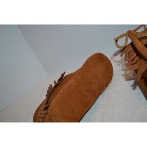 Vintage Minnetonka boot, slipper in VERY good condition. The kids suede shoe has fringe. The sole is suede. These are fab for many trends. The western, indian, native, tribal, folksy bootie is comfy. Well preserved, check out pics. Look at measurements for sizing