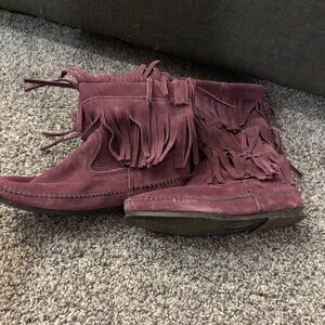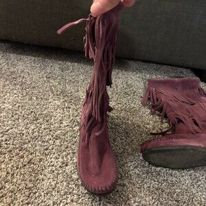Vintage Minnetonka Fringe Moccasin Boots in purple. Great condition. Comes with original box.