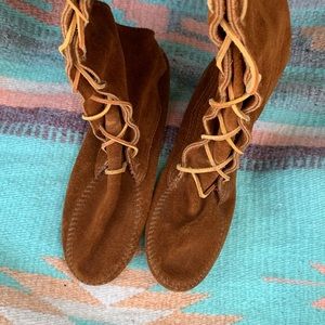 Vintage Minnetonka Suede Leather Tie Up Boots Size 7.5. In excellent condition.