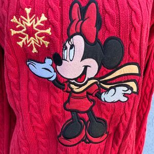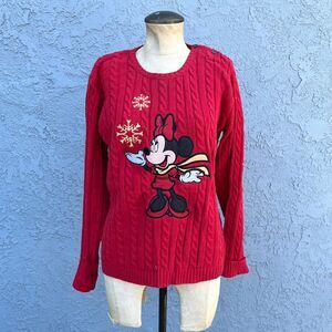 Vintage Minnie Mouse Christmas Sweaterin Red Winter Cableknit Womens Medium