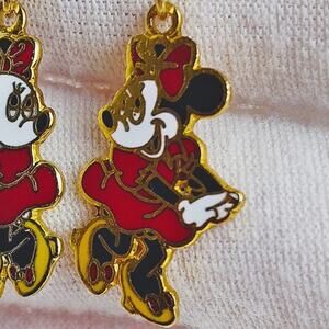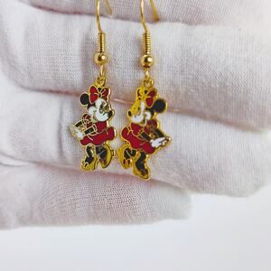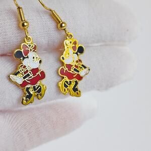 Vintage Minnie Mouse Dangle Earrings Red Dress Gold-Toned Taiwan
