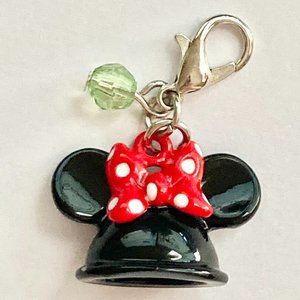 Vintage Minnie Mouse Hat Charm Bow Polka Dots Red Black Clip Zipper Pull Purse