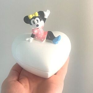 This vintage Minnie Mouse trinket box is a must-have for any Disney fan. Made in Japan in the 1970s, this heart-shaped box is perfect for storing small treasures. Measuring 4 inches in height.