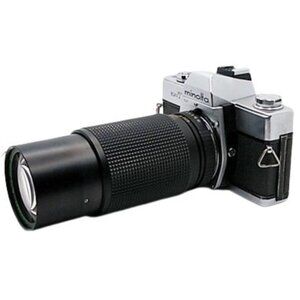 - Single lens reflex camera with through-the-lens meter coupled to shutter and film speed.
