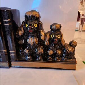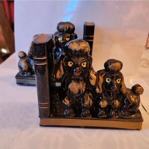 Vintage Mint '60s Black/Gold Gilded Ceramic "Poodle" Bookends Made in Japan