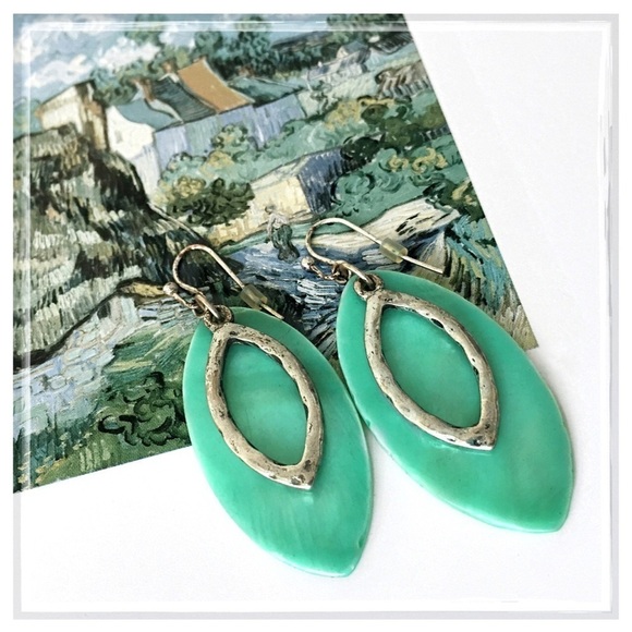 ✨Mint Green Abalone Sterling Silver Old Pawn Earrings✨Old Pawn Stock Pastel Mint Green Abalone And Sterling Silver Leaf Drop Dangle Earrings✨2” Long x 3/4” Wide✨ Not Marked, But Positive For Sterling Silver✨