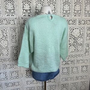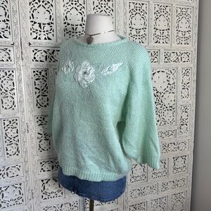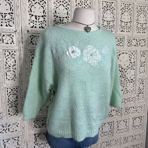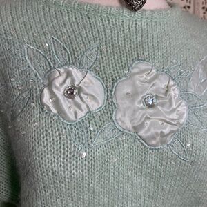 Vintage Mint Green Beaded Floral Fairy Core Granny Sweater Sz Medium