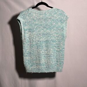 Vintage Mint Green Blue Knit Sweater Vest Cable Knit Speckled Womens L Gma Core vtg large tank sleeveless v neck granny grandma coastal lagenlook retro academia academic university collegiate