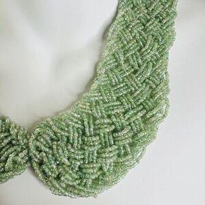 Vintage Mint Green Braided Beaded Collar Necklace Sead Beads Woven BEUTIFUL 1367