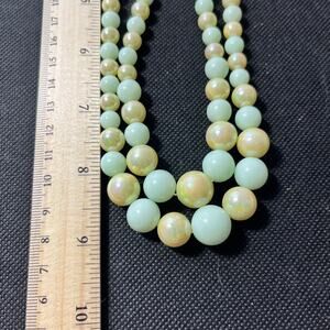 Vintage Mint Green & Pearly Green Double Strand Bead Necklace 1930's 18 inches