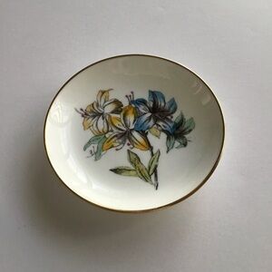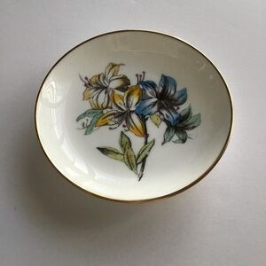 Vintage Minton English Bone China Tiger Lilly Trinket Dish Blue & Yellow Floral
