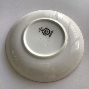 Approximately 4 1/2” in diameter and 1” deep. Gold rim. 2008, please see all markings on back. Excellent preowned condition.