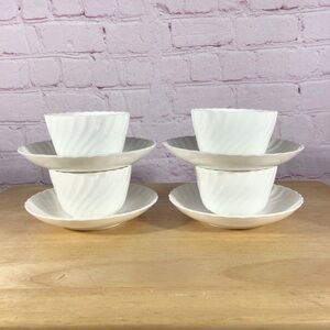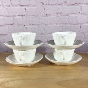 Vintage Minton White Fife cup and saucer. Set of four. Each cup measures approximately 2 3/8” tall, 4 3/8” wide including the handle. The saucer measures approximately 5 3/4” in diameter. Great vintage condition. No chips, cracks or repairs. Smoke free home.