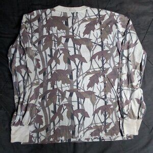 Vintage Mirage Oak Camouflage Autumn Fall Long Sleeve Pocket T-Shirt - Made in USA - Size X-Large, Measures p2p=22" Length=25" Sleeve Length=25" - Excellent Condition, Small Hole In Back (Pictured)