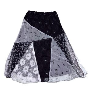 Vintage Mirasol Floral Lace Patchwork Maxi Skirt Witchy Mesh Embroidered NEW