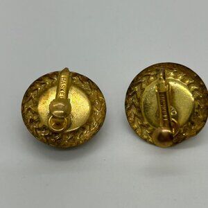 Light tarnish on gold-tone backing, consistent with vintage age. Diameter = 1 inch.
