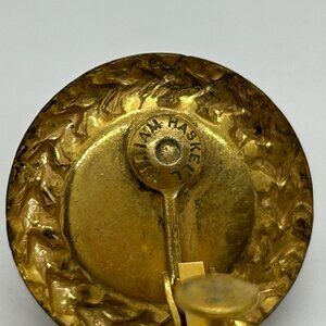 Vintage Miriam Haskell Clip-On Earrings Gold-Tone Frame Brown Speckled Cabochons