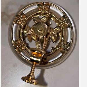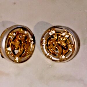 Vintage Miriam Haskell Clip-On Screw Round Earrings Pearl Gold Rhinestones 1 in.