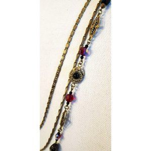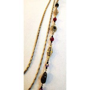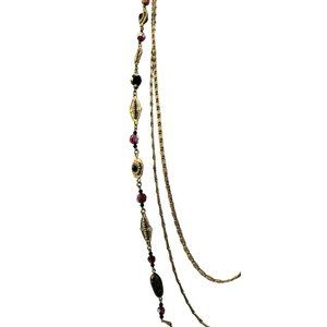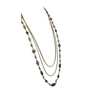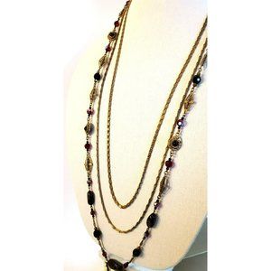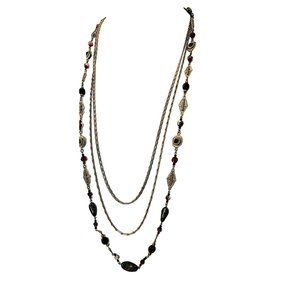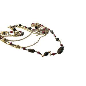 Vintage Miriam Haskell Possible Garnet Triple Layer Gold Tone Necklace, Signed