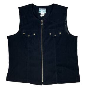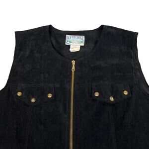 Vintage Miro Suede Black Zip Front Vest Size 18