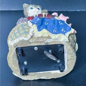 Vintage Mischievous Tabby Cat In Basket Resin Music Box Kitsch Whimsical Kitten